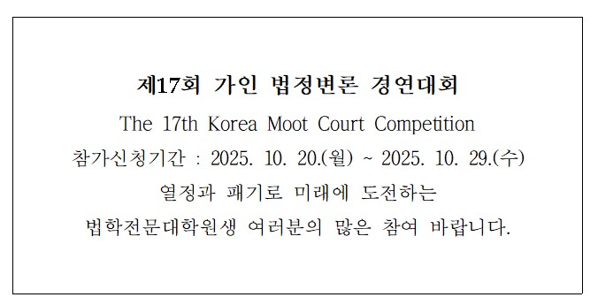 Á¦¸ñ | Á¦17ȸ °¡ÀÎ ¹ýÁ¤º¯·Ð °æ¿¬´ëȸ | ||||